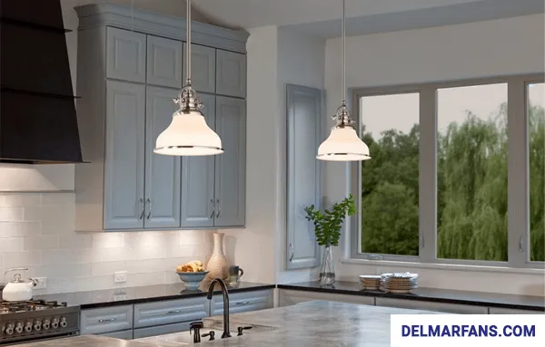 Kitchen Island Lighting doesn’t have to be complicated. In fact, you could have some fun with it! The options are quite literally endless. Pendant lights, track lights and even chandeliers can be used as kitchen island lights. You might even consider adding a fan to your setup. Smaller kitchen islands can be adorned with two pendant lights, while larger ones can support up to three or four. The trick is to make it look tasteful while maximizing utility. Don’t get pendant lights or chandeliers that are too big for your space because it can disrupt your decor and look forced.